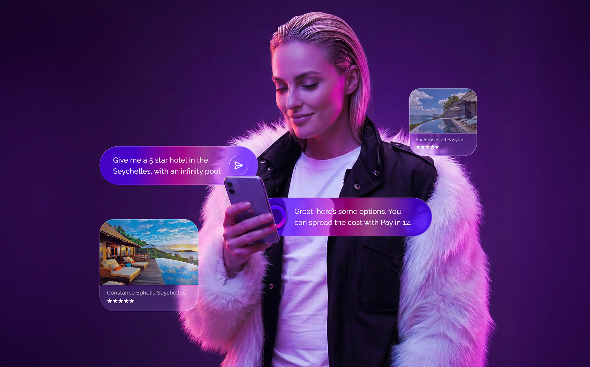 Critically, every trip recommendation arrives with a personalised payment plan already embedded. Vuelo's proprietary risk engine runs in the background before the customer sees a single travel option. Rather than showing a headline price with financing as an afterthought, Vuelo presents the trip as it is actually experienced: "Barcelona, 5 nights, £74 per month over 6 months."